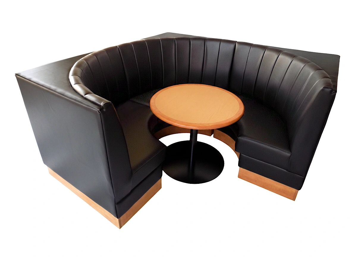 Si necesita aprovechar espacios, el Booth para Restaurante Expresso esquinero le puede ayudar. Gracias a su diseño semi circular de 3/4, puede colocarse en una esquina o en línea, aprovechando al máximo sus áreas. Siempre con la comodidad y privacidad únicas que otorgan los booths y gabinetes.