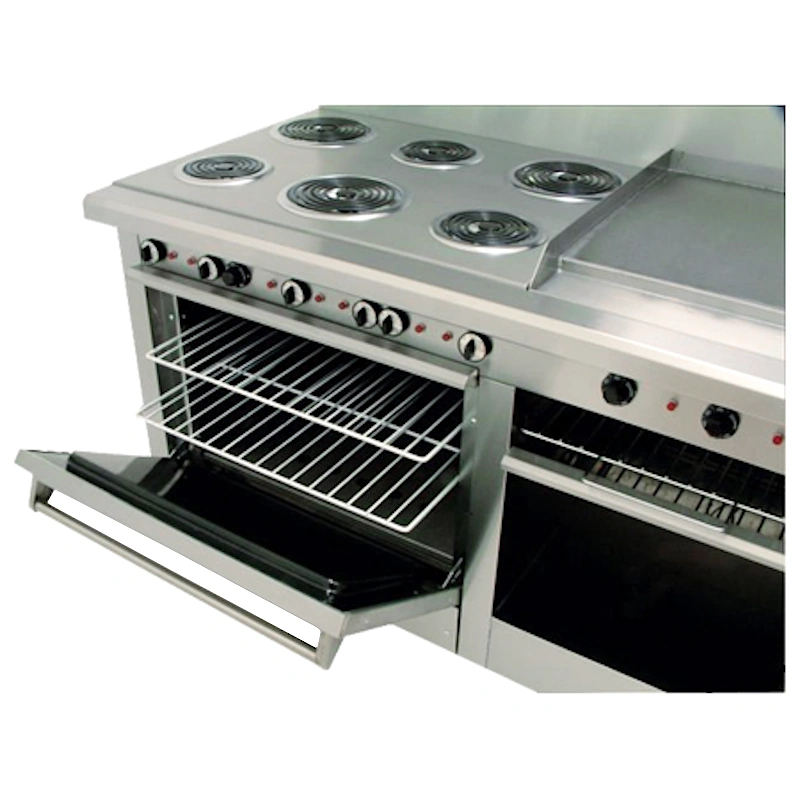 La estufa Eléctrica Profesional EC-6-H-GRILL-E Master Premium de Coriat se fabrica Totalmente en lámina de Acero Inoxidable y para Uso Rudo. Gracias a que cuenta con termostato y perillas graduadas nos permite mantener una temperatura uniforme en toda la superficie. Y obtenemos con esto una excelente capacidad de cocinar una infinidad de especialidades y platillos. Incluye horno, plancha y gratinador.