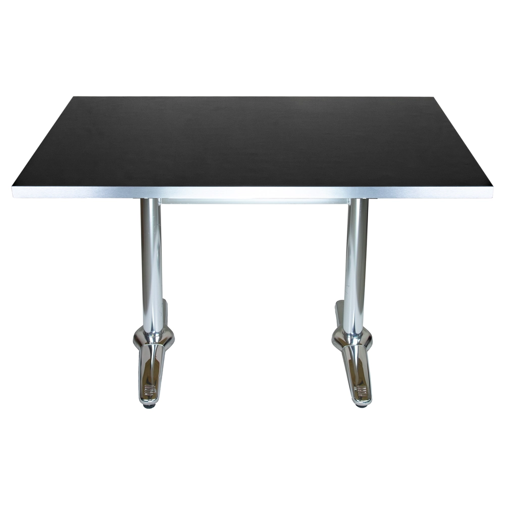 La Mesa para Restaurante Chrome-TB06-12080 Rectangular de 120×80 cms, es una mesa muy original. De estilo brillante, imprime modernidad y minimalismo al mismo tiempo. Se fabrica en Madera MDF Forrada en Laminado Premium de doble capa al alto brillo. Su Canto Protector es de PVC Aluminizado con terminado cepillado que a la vez le da un aire retro. Su original base TB06, es de Acero Inoxidable de doble pedestal con regatones niveladores en patas.