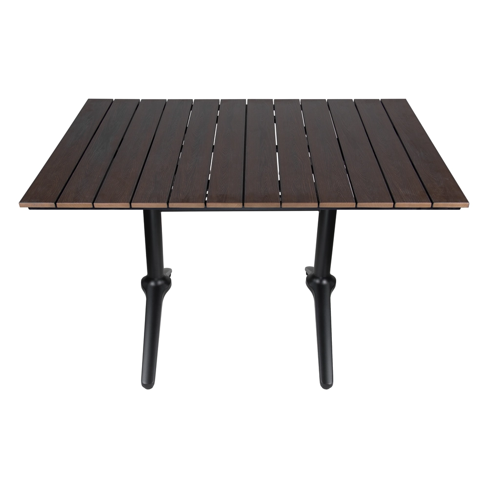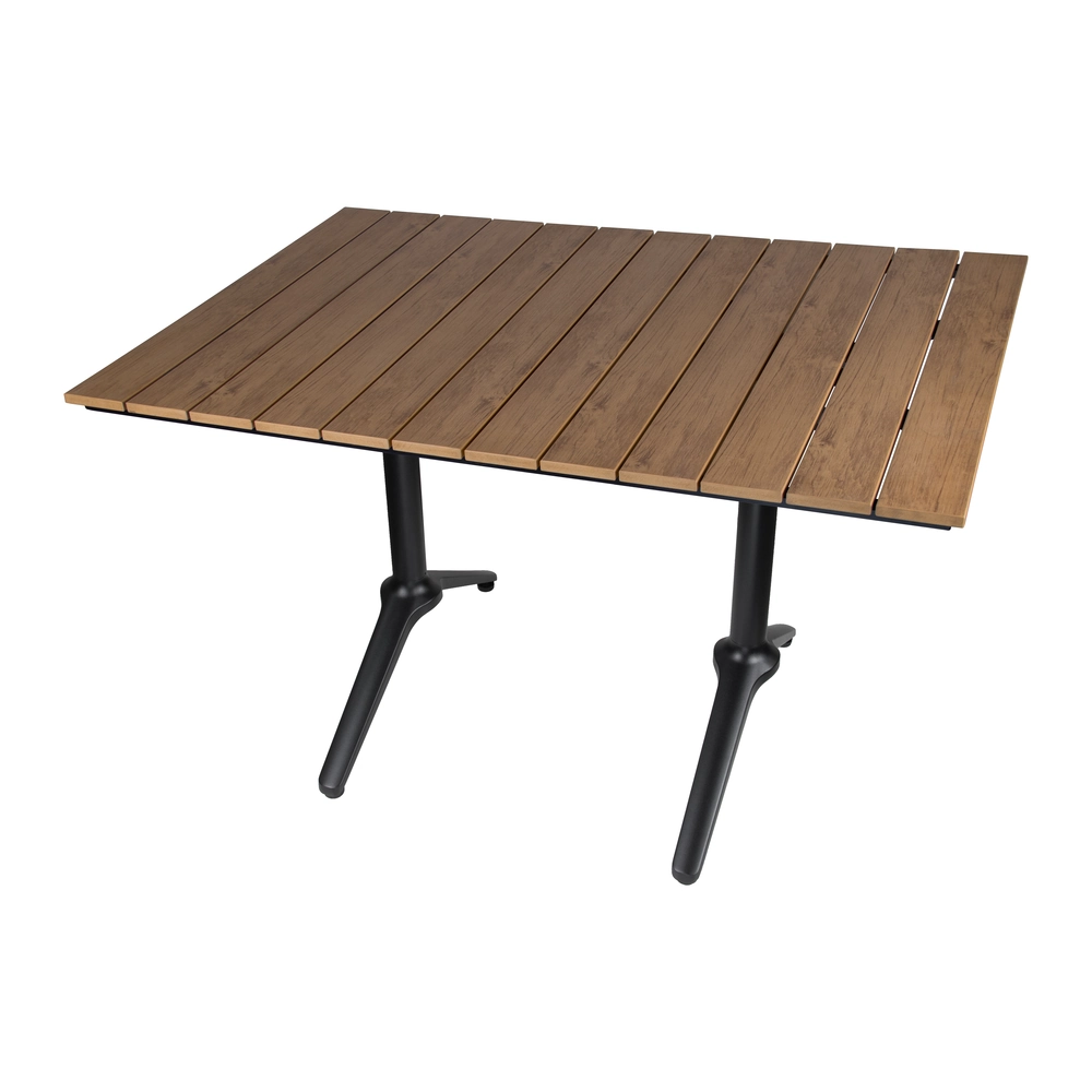 La Mesa Poly-Madera DT-06270S4-BR31 Rectangular  de 120×80 cms es Ideal para Exteriores en Restaurantes, Hoteles y Cafeterías. Su Cubierta es en tableado de Polimadera. Poliamida Imitación Madera con estructura de Aluminio por lo que la hace apta para Intemperie. Su Base BR31, es de Doble Pedestal con diseño de pie alzado, fabricada en aluminio pulido y terminado en poliester electroestático. Cuenta con regatones niveladores y está disponible en colores blanco y negro.